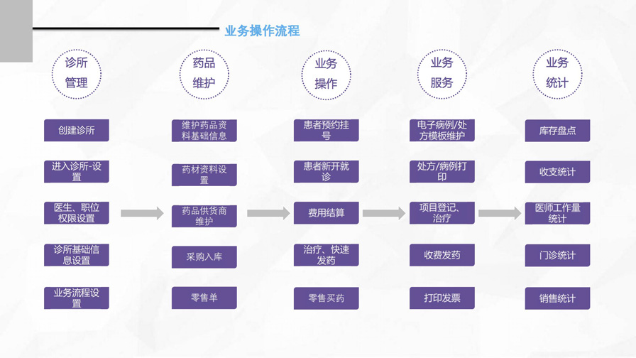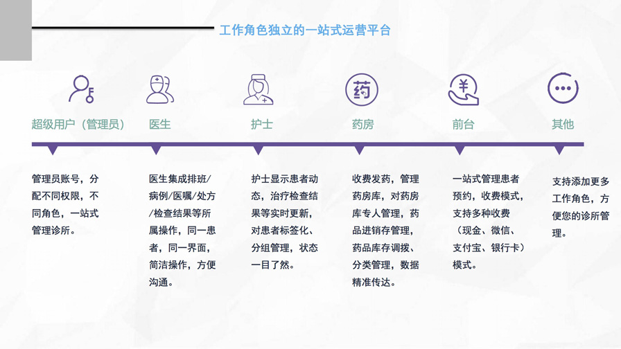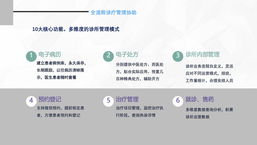 集藥房管理、劃價(jià)收費(fèi)、電子處方、財(cái)務(wù)統(tǒng)計(jì)、中醫(yī)智能診斷等為一體的診所管理軟件